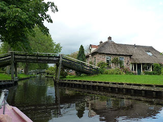 Boat ride under the high bridges and past thatched houses in the lovely town of Giethoorn.